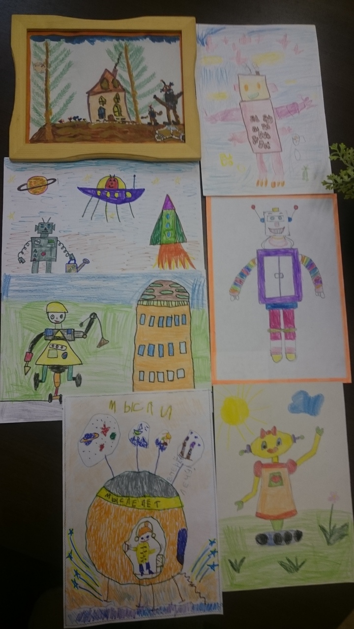 Всего в конкурсе поучаствовал 41 ребенок. Многие из дошколят выбрали предметом рисования роботов разной направленности: машина, пила, модница, кот, повар, официант, душа и т.д. Некоторые рисовали технику будущего, в частности, машины. Кто-то нарисовал инопланетян, а кто-то изобразил сюжетные картины. Есть работы, выполненные с помощью взрослых.